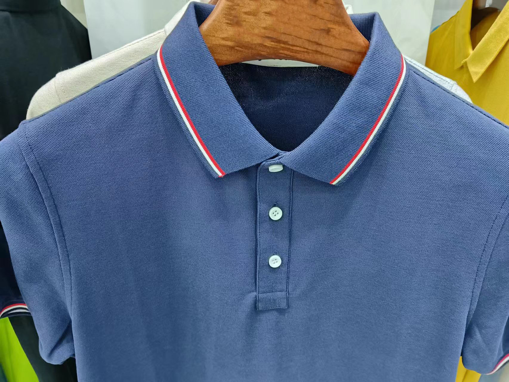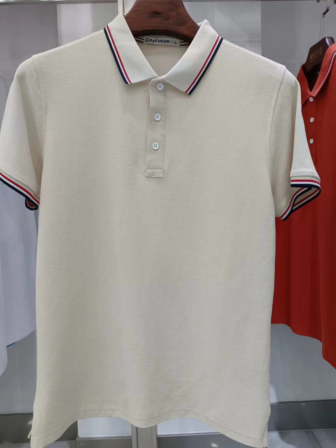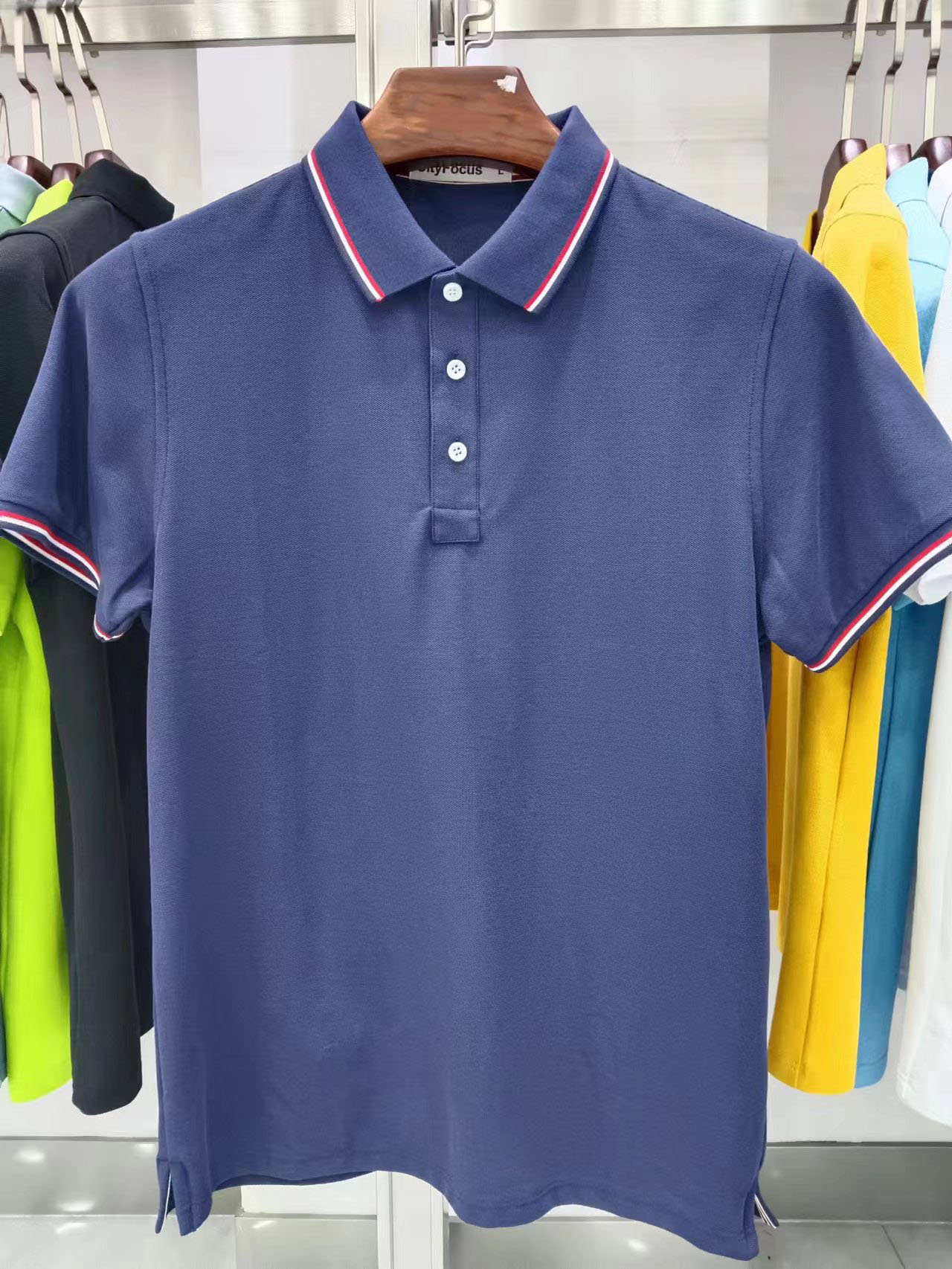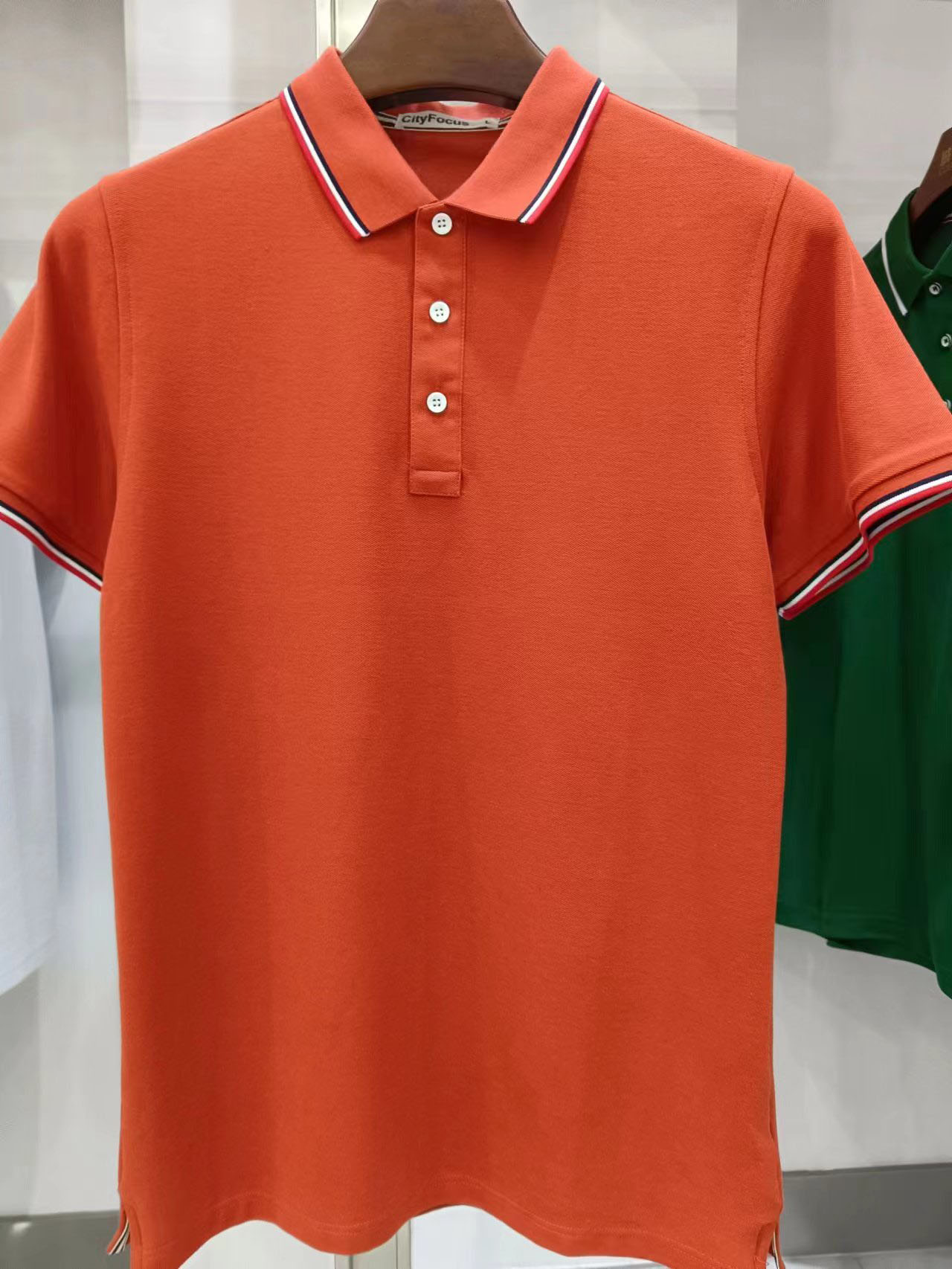 210g40支新疆长绒棉双珠地间色翻领开叉下摆CF555